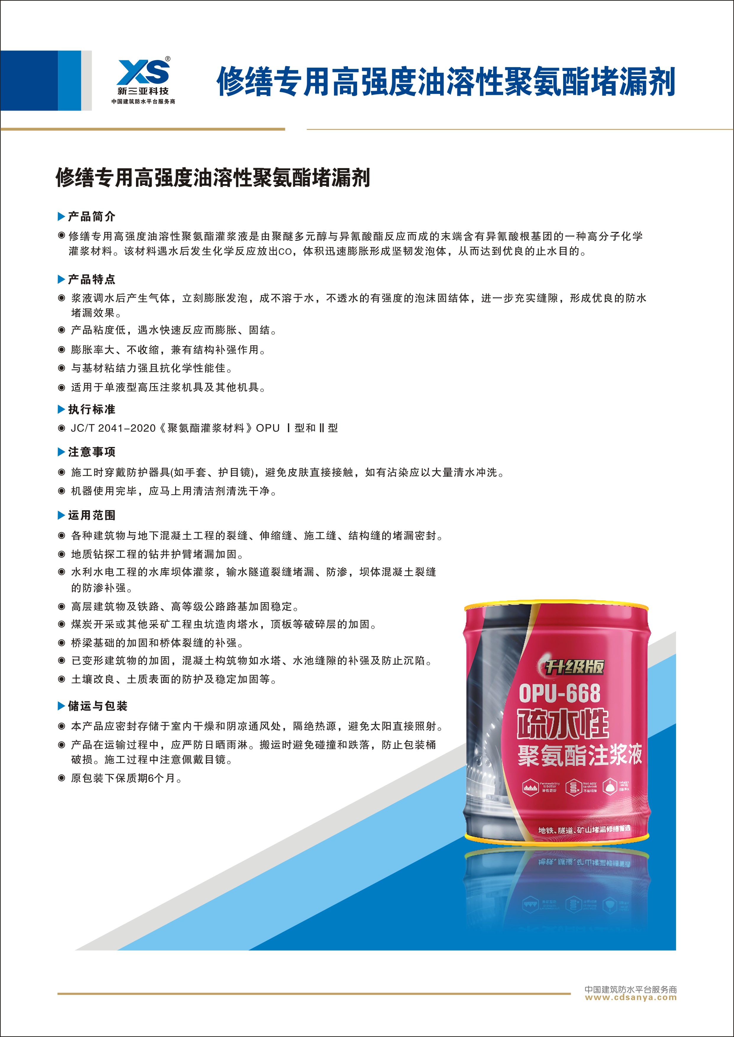 高強(qiáng)度油溶性聚氨酯堵漏劑(Ⅰ型 疏水性) | |